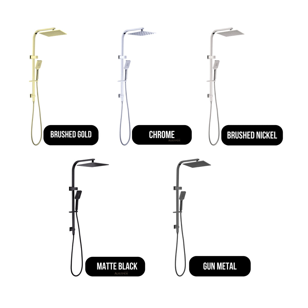 The Nero Celia Twin Shower blends performance, style, and flexibility for modern bathrooms. Featuring a 250mm dome overhead shower and a 3 function hand shower, it offers a refreshing and versatile experience. Built with a satin-smooth hose, adjustable rail, and sleek diverter, it ensures comfort and convenience. Available in Brushed Gold, Brushed Nickel, Chrome, Gun Metal, and Matte Black, this WELS-certified brass shower set is backed by extensive warranty coverage, delivering long-lasting reliability and everyday luxury.