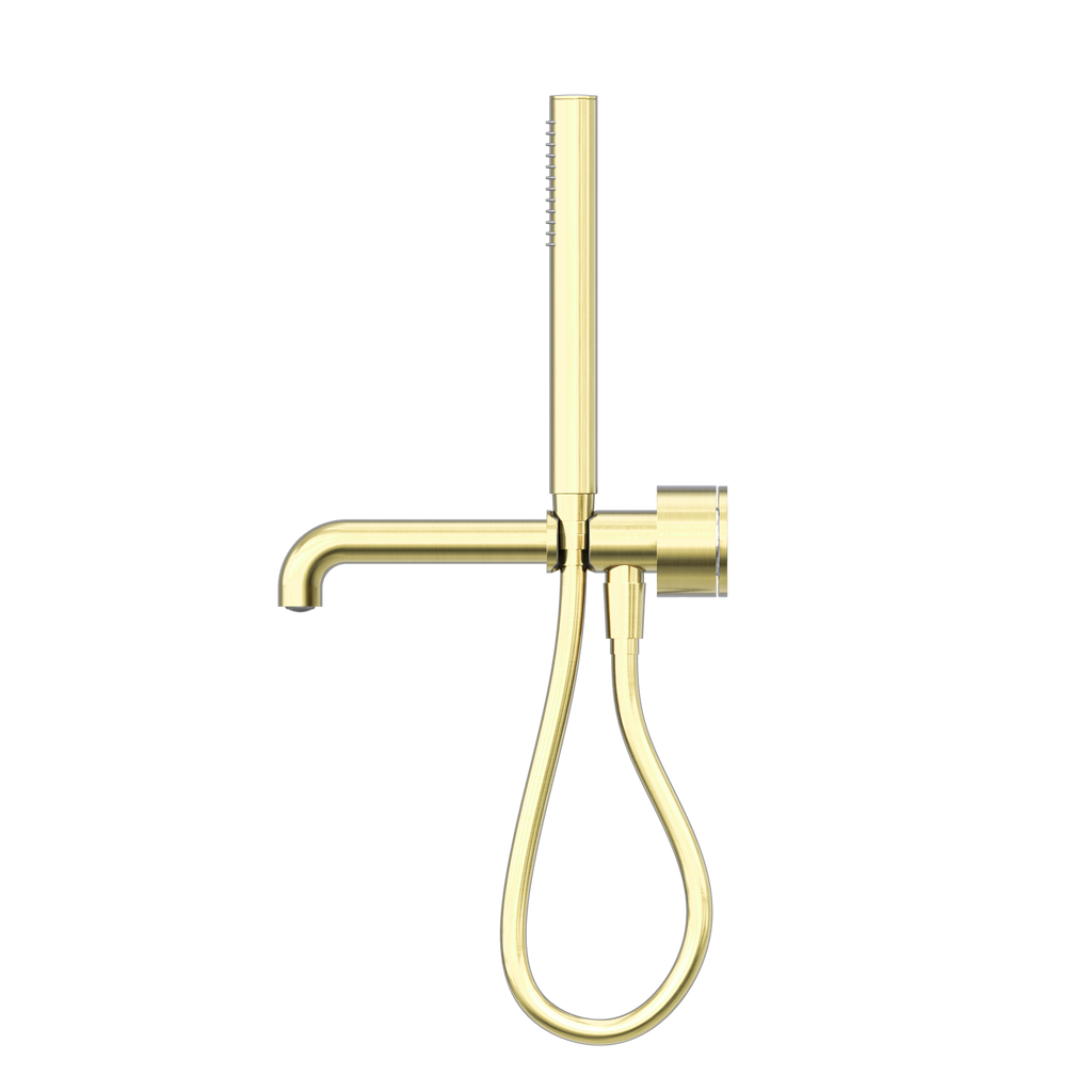 The Nero Kara Progressive Shower System Separate Plate With Spout, available in 230mm and 250mm sizes, is crafted from durable brass for strength and style. It features a 25mm progressive cartridge, dial-operated diverter, and a single-function brass hand shower for precise control. Designed for efficiency with a 3 Star WELS rating and 8L/min flow rate, it is available in Brushed Bronze, Brushed Gold, Brushed Nickel, Chrome, Gun Metal, and Matte Black, supported by extensive residential and commercial warranties.