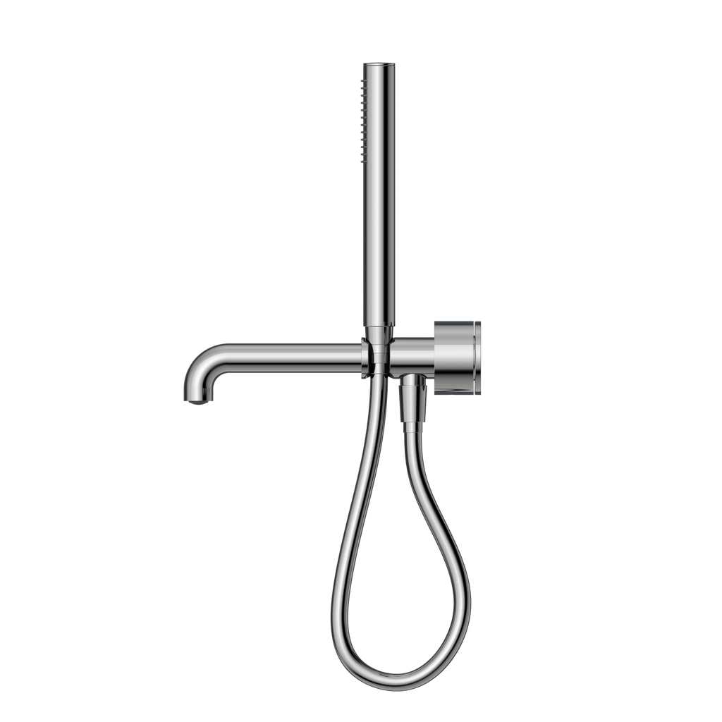 The Nero Kara Progressive Shower System Separate Plate With Spout, available in 230mm and 250mm sizes, is crafted from durable brass for strength and style. It features a 25mm progressive cartridge, dial-operated diverter, and a single-function brass hand shower for precise control. Designed for efficiency with a 3 Star WELS rating and 8L/min flow rate, it is available in Brushed Bronze, Brushed Gold, Brushed Nickel, Chrome, Gun Metal, and Matte Black, supported by extensive residential and commercial warranties.