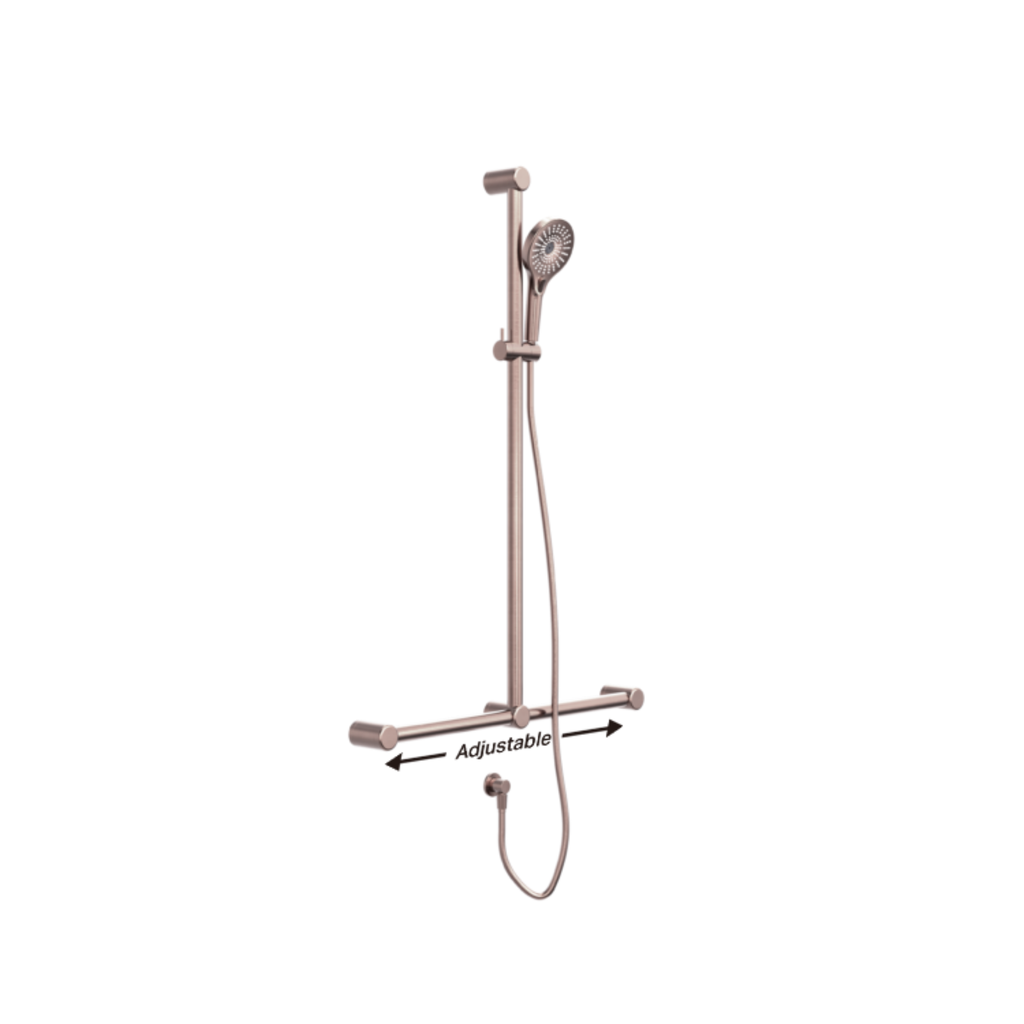 The Nero Mecca Care 32mm T Bar Grab Rail And Adjustable Shower Set in Brushed Bronze is designed for accessible, safe, and stylish showering. Measuring 1100mm x 750mm, it supports up to 150kg and complies with AS1428.1 standards. Crafted from 304 stainless steel with a PVD finish, it includes a 3-function handset, 1.5m hose, and adjustable rail. Available in Brushed Gold, Brushed Nickel, Chrome, Gun Metal, and Matte Black. Backed by extensive domestic and commercial warranties.