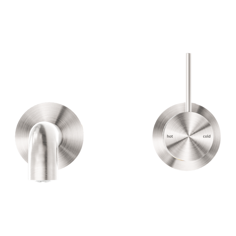 NERO MECCA WALL BASIN/BATH MIXER WITH SEPARATE BACK PLATE HANDLE UP BRUSHED NICKEL (AVAILABLE IN 120MM, 160MM, 185MM, 230MM AND 260MM)