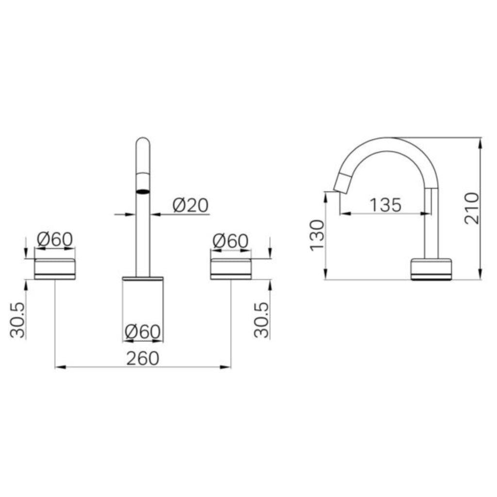 The Nero Serenity Basin Set features a refined 210mm arc spout with 180° swivel functionality and luxurious Rome Travertine marble handles. Crafted from brass with a durable copper connector and ¼ turn cartridge, it ensures smooth control and adjustable handle spacing. WELS 5 Star rated at 5L/min, it includes a complete installation kit. Available in Brushed Bronze, Brushed Gold, Brushed Nickel, Chrome, Gun Metal, and Matte Black. Backed by a generous domestic and commercial warranty.