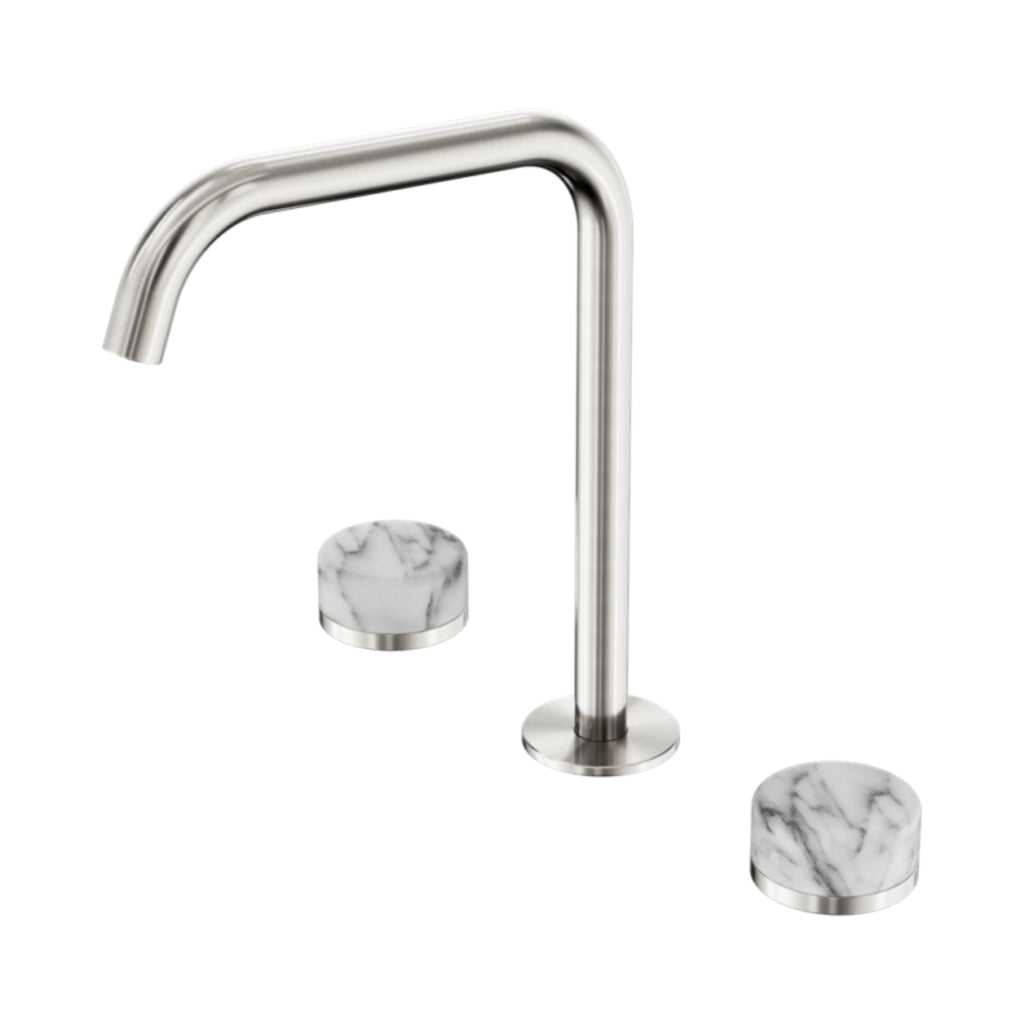 NERO SERENITY BATH/KITCHEN SET EDGE SPOUT WITH ARABESCATO CORCHIA HANDLE 270MM BRUSHED NICKEL