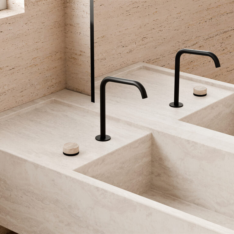 NERO SERENITY PROGRESSIVE BATH/KITCHEN MIXER EDGE SPOUT WITH ROME TRAVERTINE HANDLE 270MM MATTE BLACK