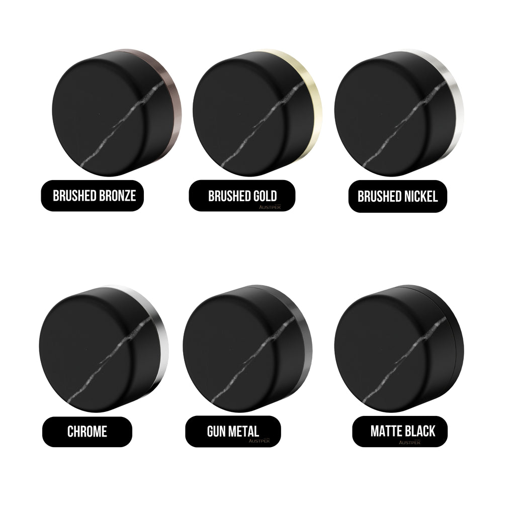 The Nero Serenity Progressive Shower Mixer with Marquina Black Handle combines refined style with reliable functionality. Made from solid lead-free brass and natural Italian marble, it ensures durability and safety. A progressive cartridge delivers smooth water flow and precise temperature control. Handle options include Carrara, Rome Travertine, Marquina Black, and customizable marble choices, paired with a sleek metal handle. Available in Brushed Bronze, Brushed Gold, Brushed Nickel, Chrome, Gun Metal, and Matte Black, it is supported by extensive domestic and commercial warranties.