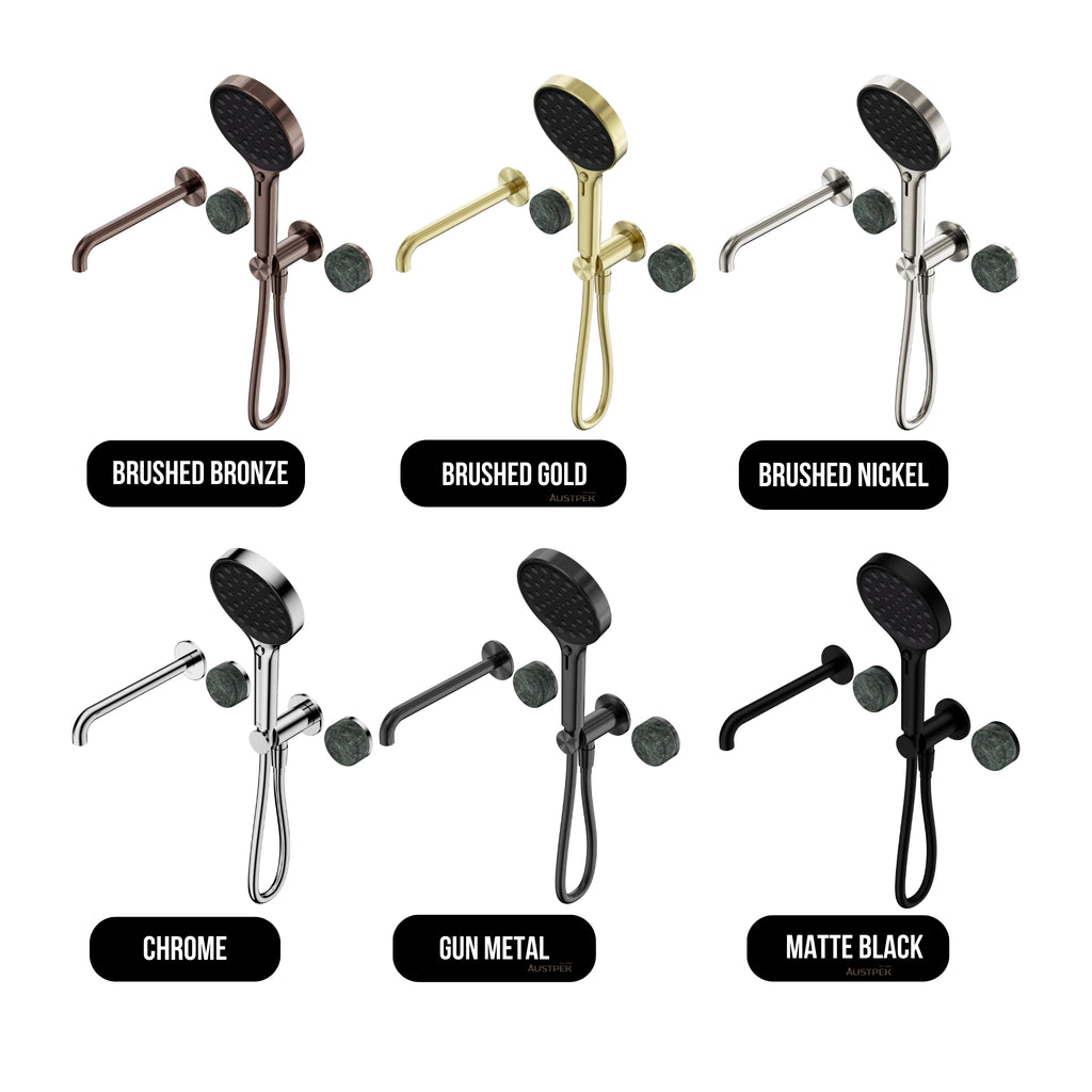 The Nero Serenity Progressive Shower System with Spout, Verde Alpi Handle and Serenity Hand Shower delivers refined luxury with smooth progressive control and premium materials. Featuring a natural Verde Alpi stone handle, integrated spout and matching hand shower, it offers both functionality and elegant design. Available in Brushed Bronze, Brushed Gold, Brushed Nickel, Chrome, Gun Metal and Matte Black. Backed by extensive domestic warranties covering finishes, shower components and labour for lasting confidence.
