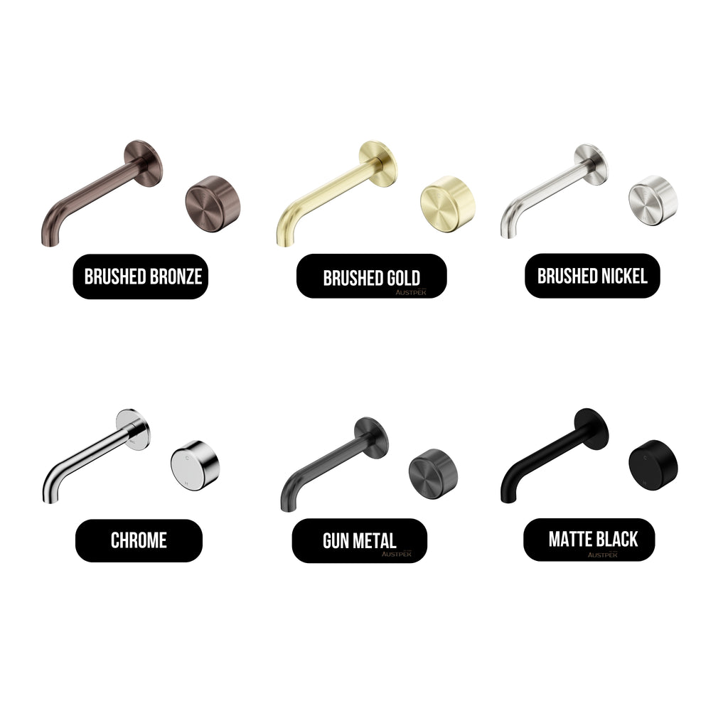 The Nero Serenity Progressive Wall Basin Mixer Spout with Metal Handle offers a balance of refined style and reliable performance. Made from lead-free brass, it ensures safe durability, while the progressive cartridge delivers smooth water flow and precise temperature control. With optional marble handle selections for added luxury, it is available in Brushed Bronze, Brushed Gold, Brushed Nickel, Chrome, Gun Metal, and Matte Black. Packaged with Body and Trim Kits, it includes a non-restricting bath aerator and is backed by a 25-year domestic warranty.
