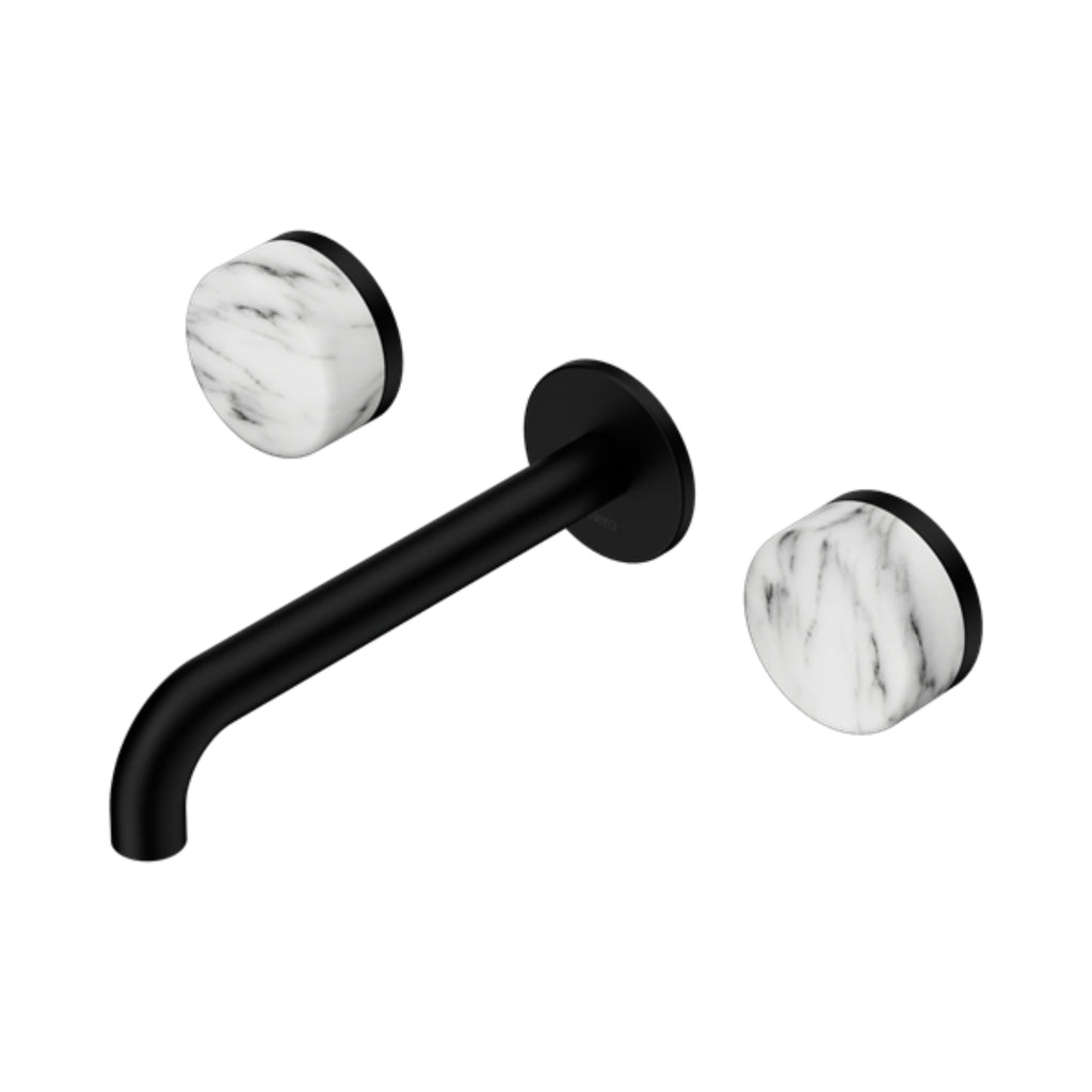 NERO SERENITY WALL BASIN SET SPOUT WITH ARABESCATO CORCHIA HANDLE MATTE BLACK (AVAILABLE IN 160MM, 185MM AND 220MM)