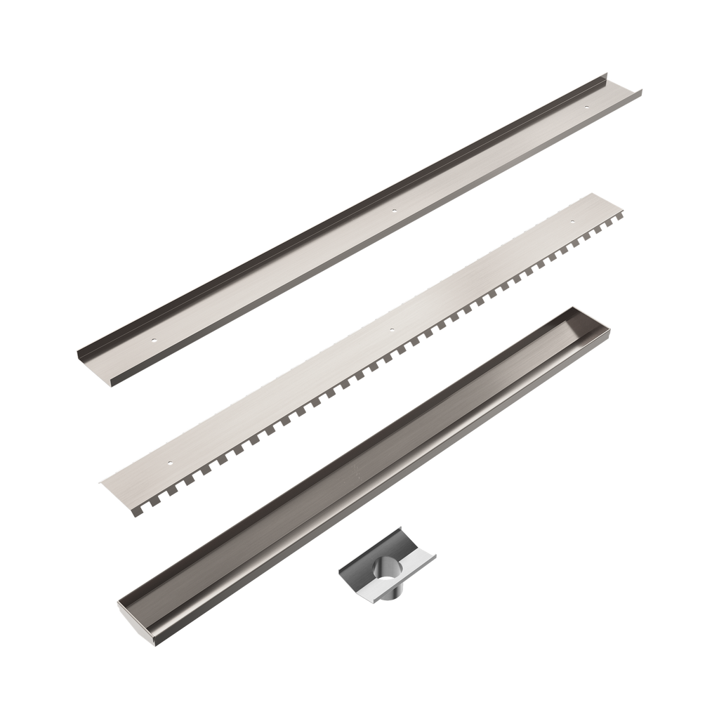 NERO V CHANNEL TILE INSERT FLOOR GRATE 900MM BRUSHED NICKEL