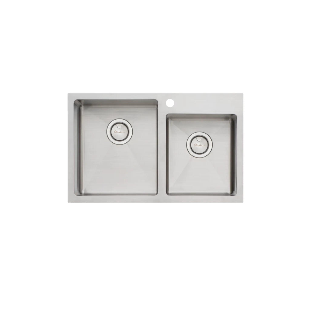 OLIVERI APOLLO 1 & 3/4 OFFSET BOWL KITCHEN SINK WITH TAPHOLE STAINLESS STEEL 750MM
