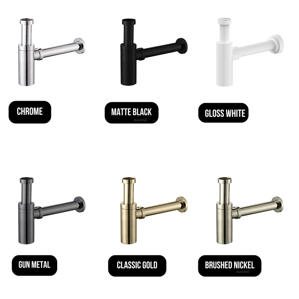 The Oliveri Bottle Trap in Gun Metal is a clean, practical finishing detail for modern bathroom basins where exposed plumbing needs a refined look. Available in Chrome, Brushed Nickel, Classic Gold, Gunmetal, Matte Black and Gloss White, it pairs easily with matching tapware and wastes for a cohesive aesthetic. Constructed from solid brass with durable gaskets, it offers adjustable height and outlet length for flexible installation. Backed by a 1-year replacement parts and labour warranty.