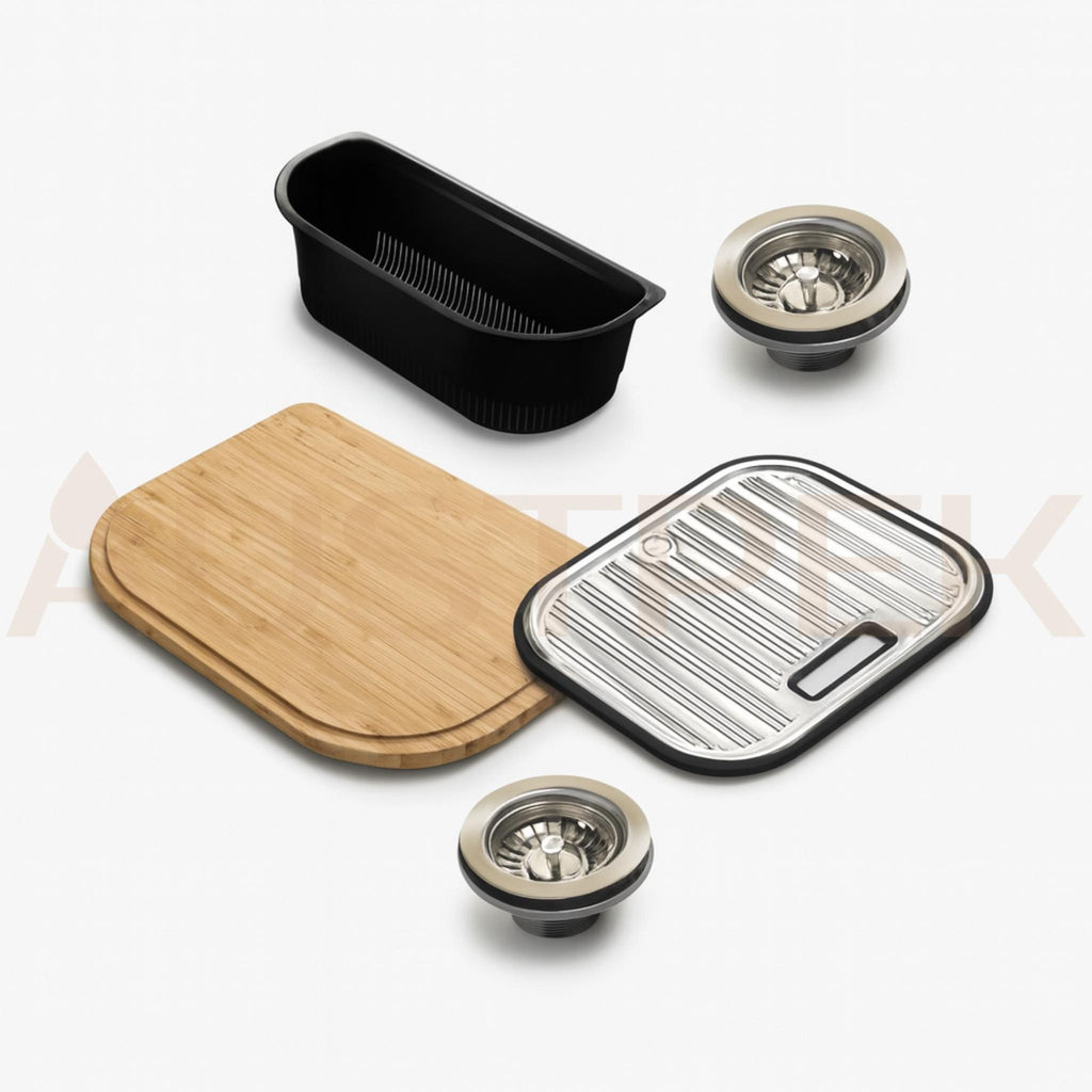 - Included Accessories: 2x Basket Waste | 1x Bamboo Board | 1x Colander | 1x Utility Tray