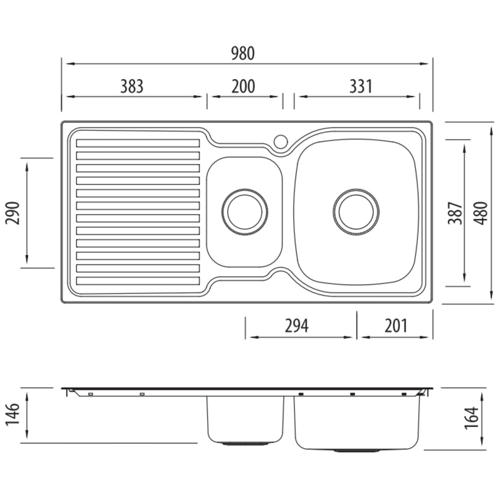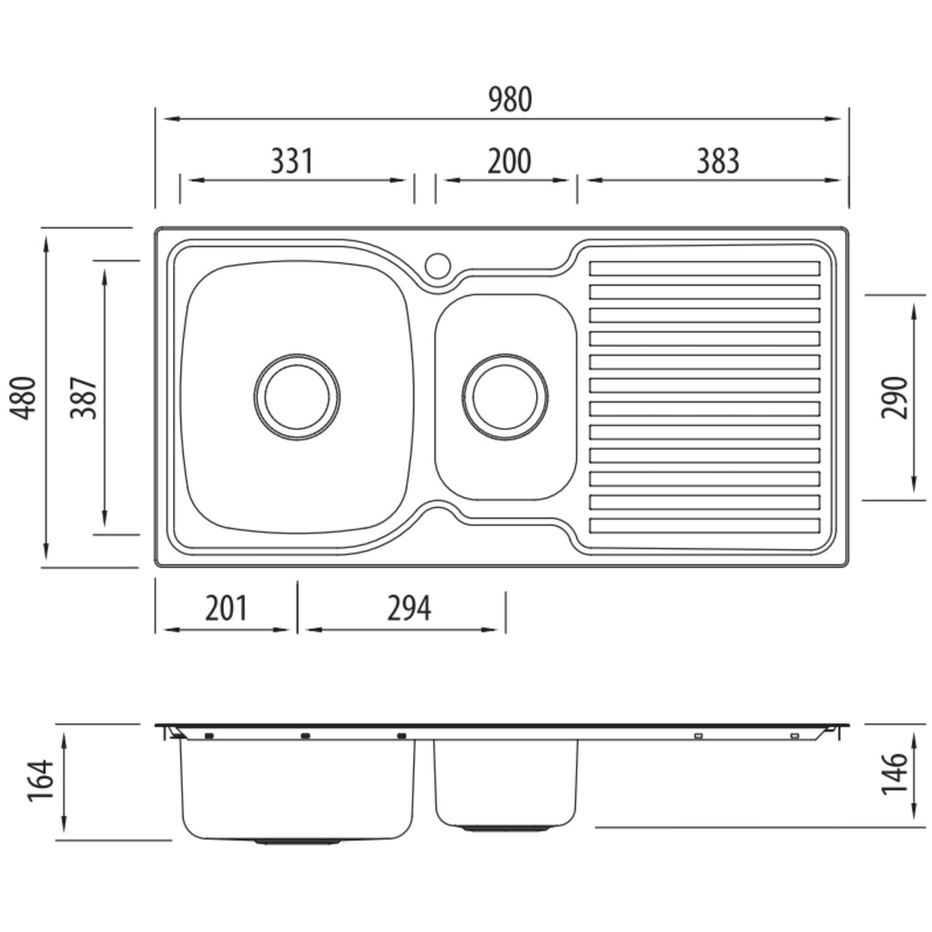 - Overall Sink Size: 980mm X 480mm X 164mm