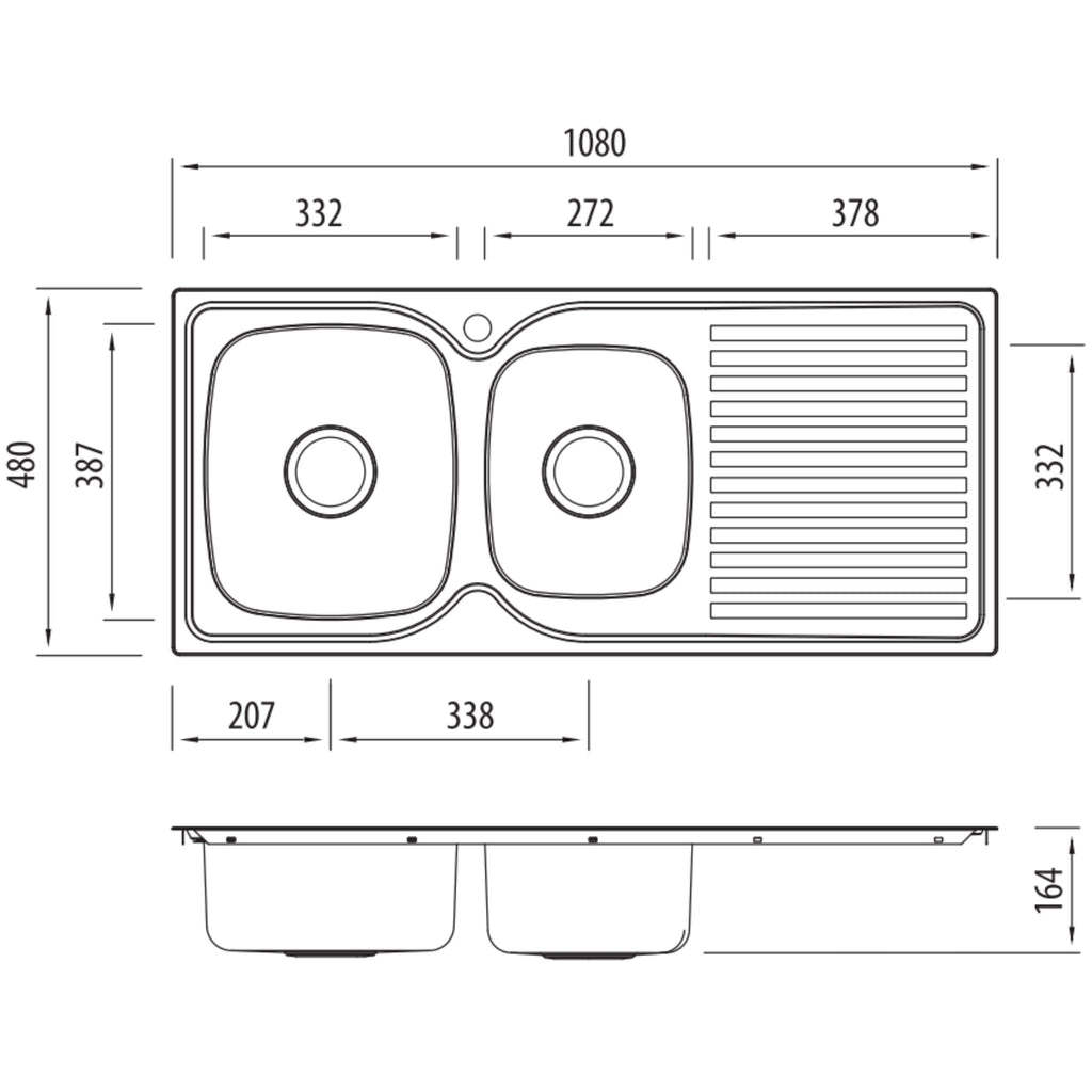 - Overall Sink Size: 1080mm X 480mm X 164mm