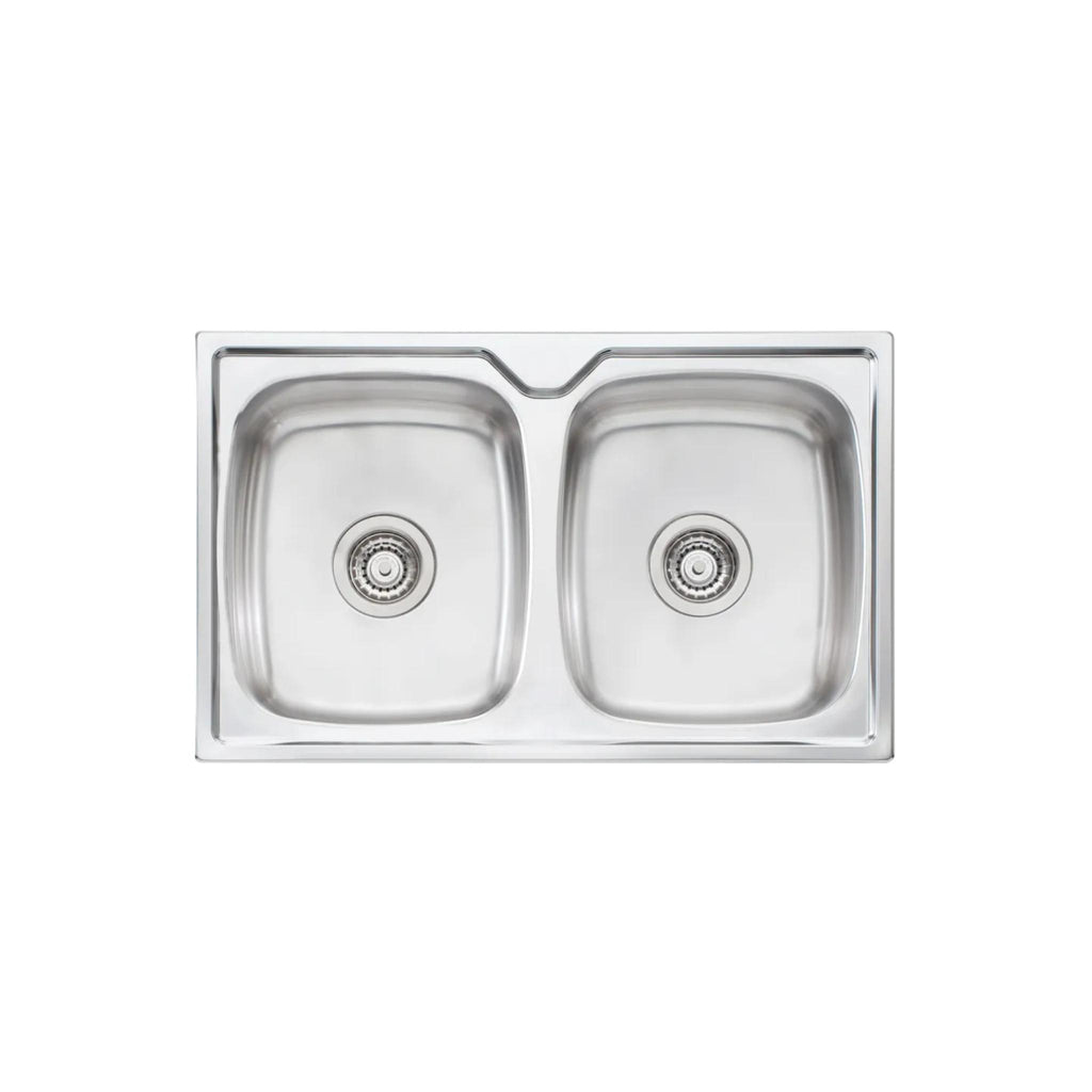 OLIVERI ENDEAVOUR DOUBLE BOWL TOPMOUNT KITCHEN SINK STAINLESS STEEL 770MM