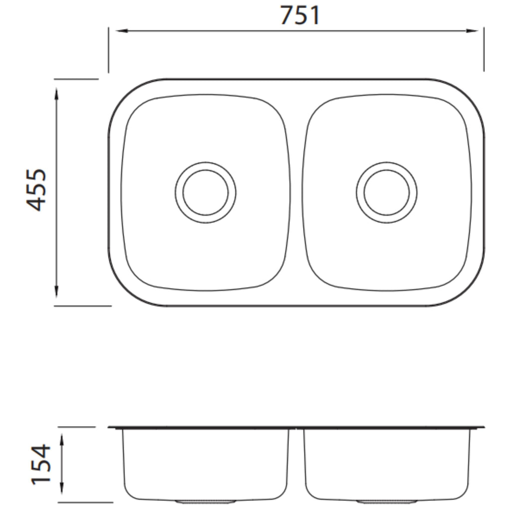 - Overall Sink Size: 751mm X 455mm X 154mm