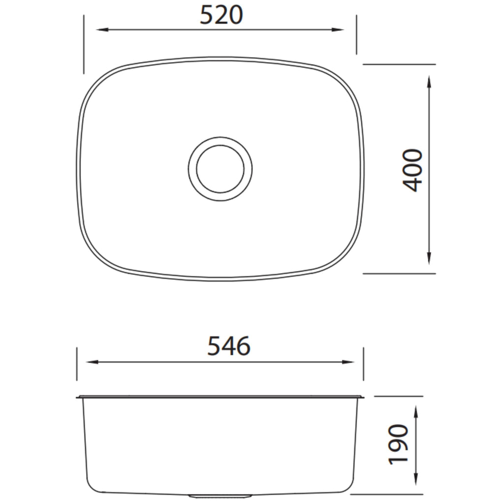 - Overall Sink Size: 546mm X 426mm X 190mm