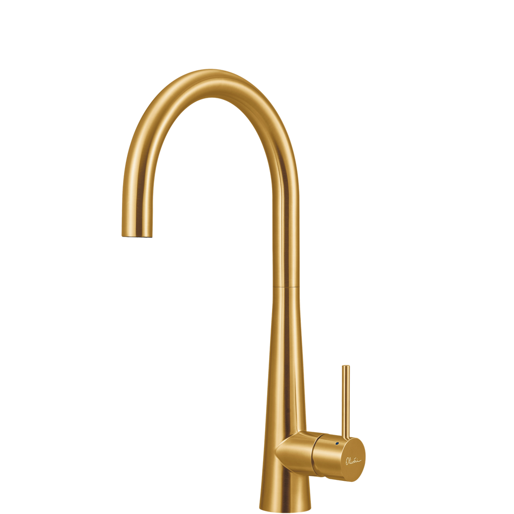 OLIVERI ESSENTE 316 LEAD FREE GOOSE NECK KITCHEN MIXER 443MM BRUSHED GOLD