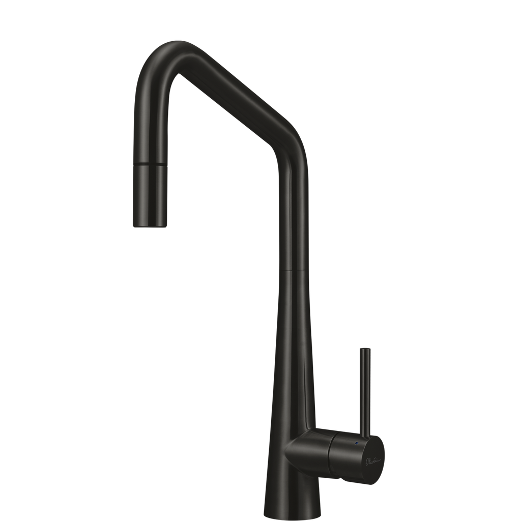 OLIVERI ESSENTE 316 LEAD FREE SQUARE GOOSE NECK PULL OUT KITCHEN MIXER 424MM BRUSHED BLACK