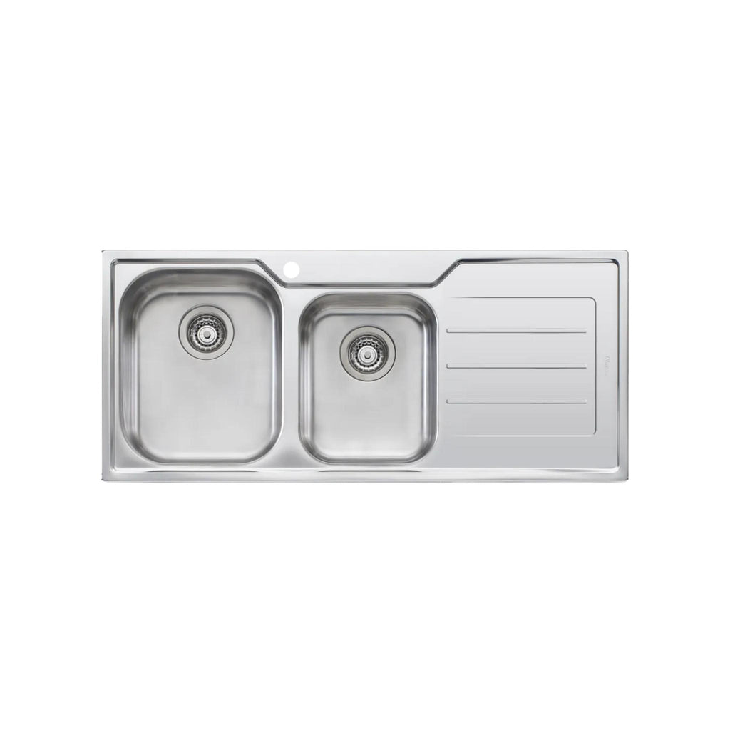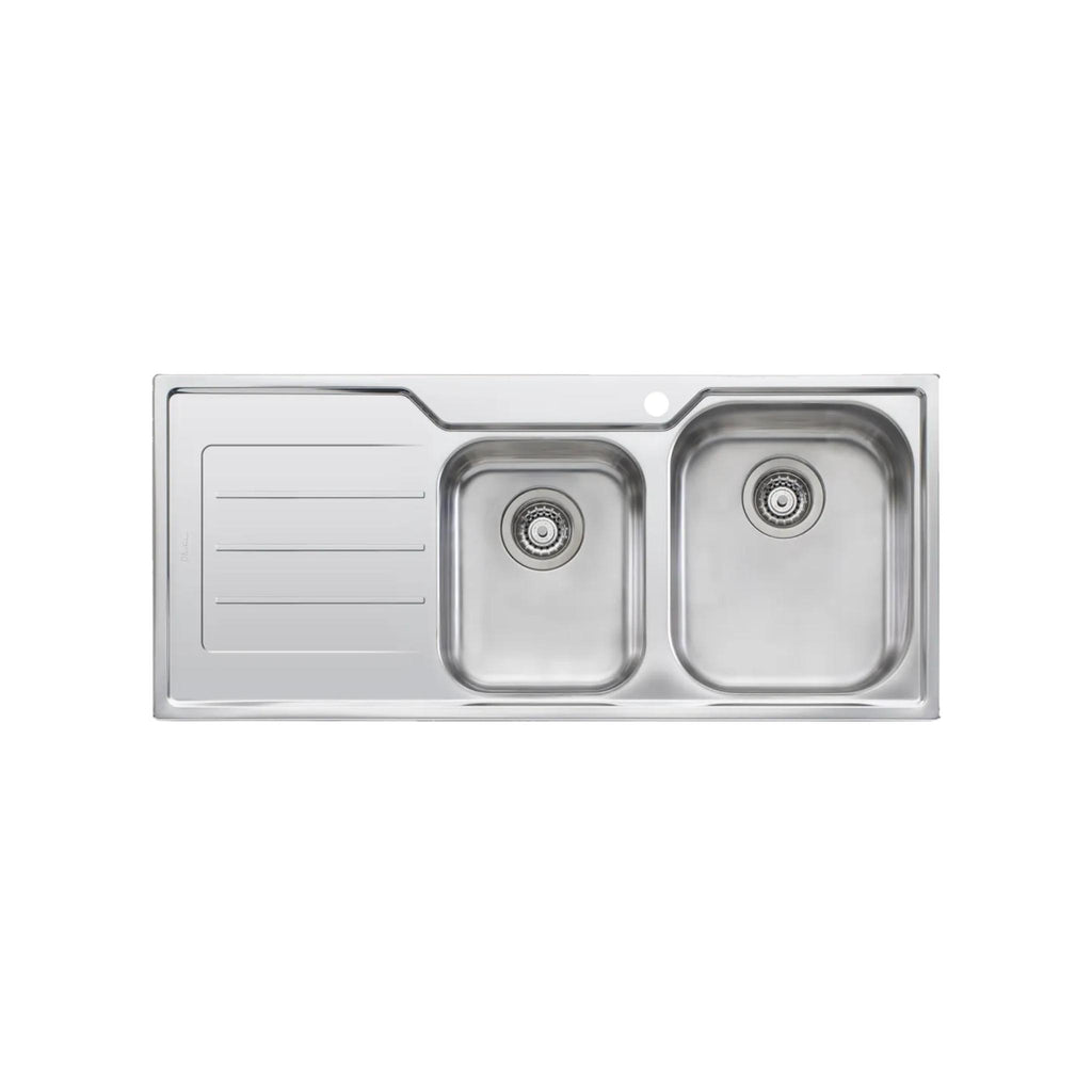 OLIVERI FLINDERS 1 & 3/4 BOWL TOPMOUNT KITCHEN SINK WITH DRAINER STAINLESS STEEL 1080MM