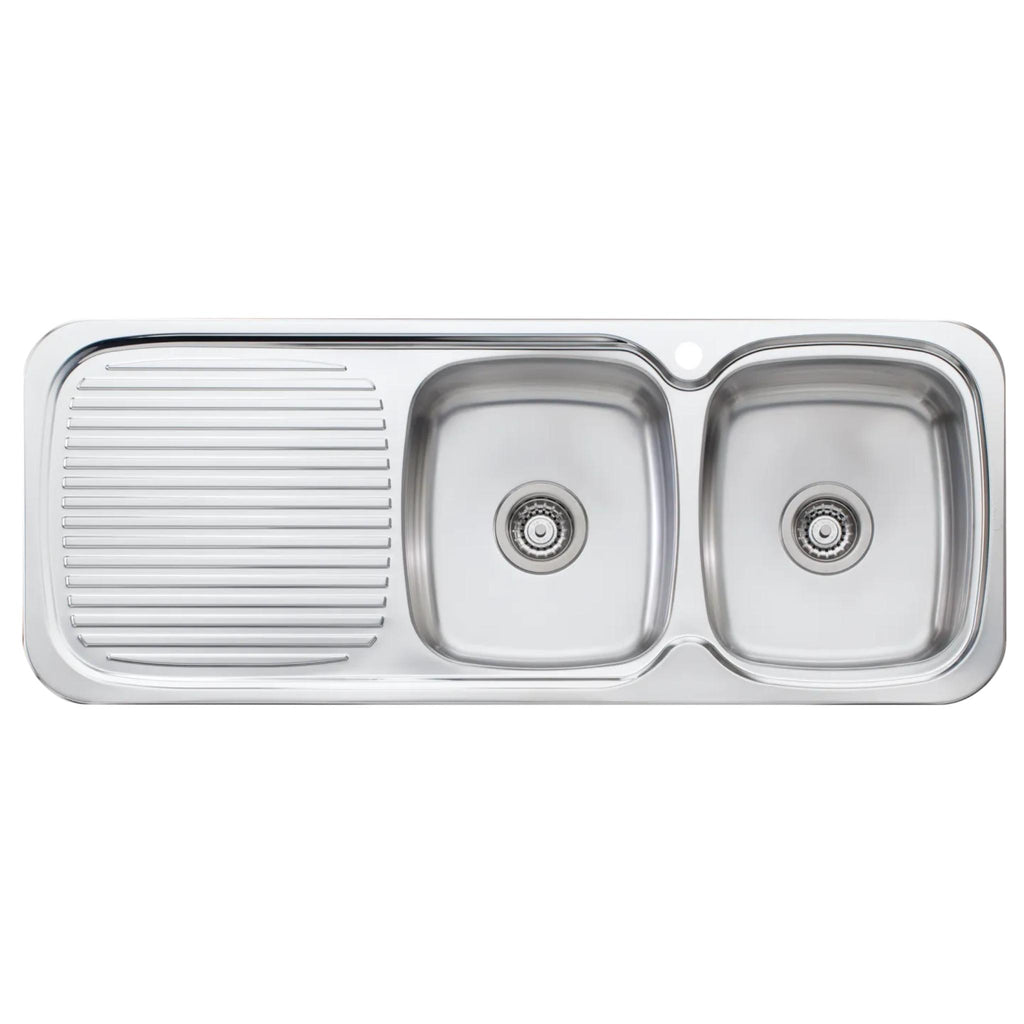 OLIVERI LAKELAND DOUBLE BOWL TOPMOUNT KITCHEN SINK WITH TAPHOLE & DRAINER STAINLESS STEEL 1200MM
