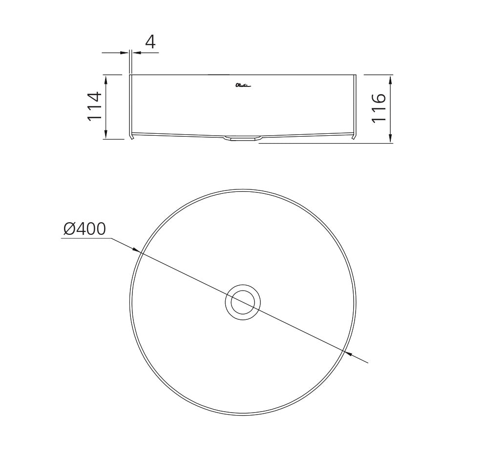 OLIVERI MILAN ROUND STAINLESS STEEL COUNTER TOP BASIN COPPER 400MM