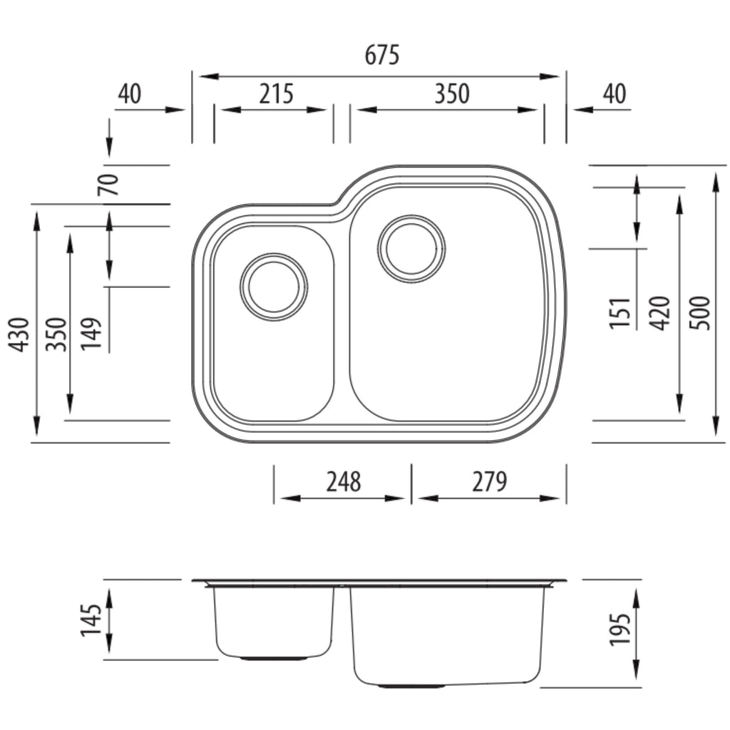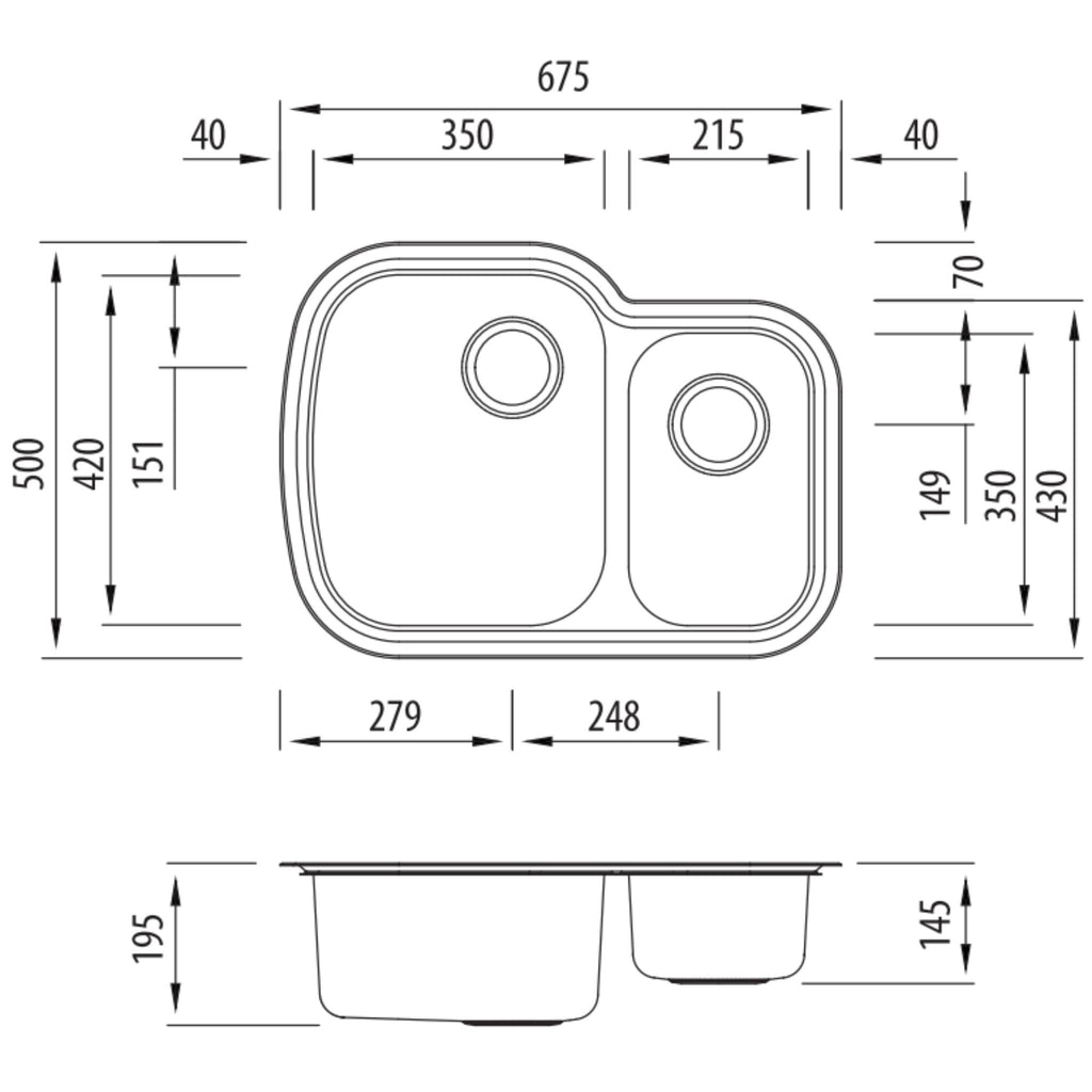 - Overall Sink Size: 675mm X 500mm X 195mm