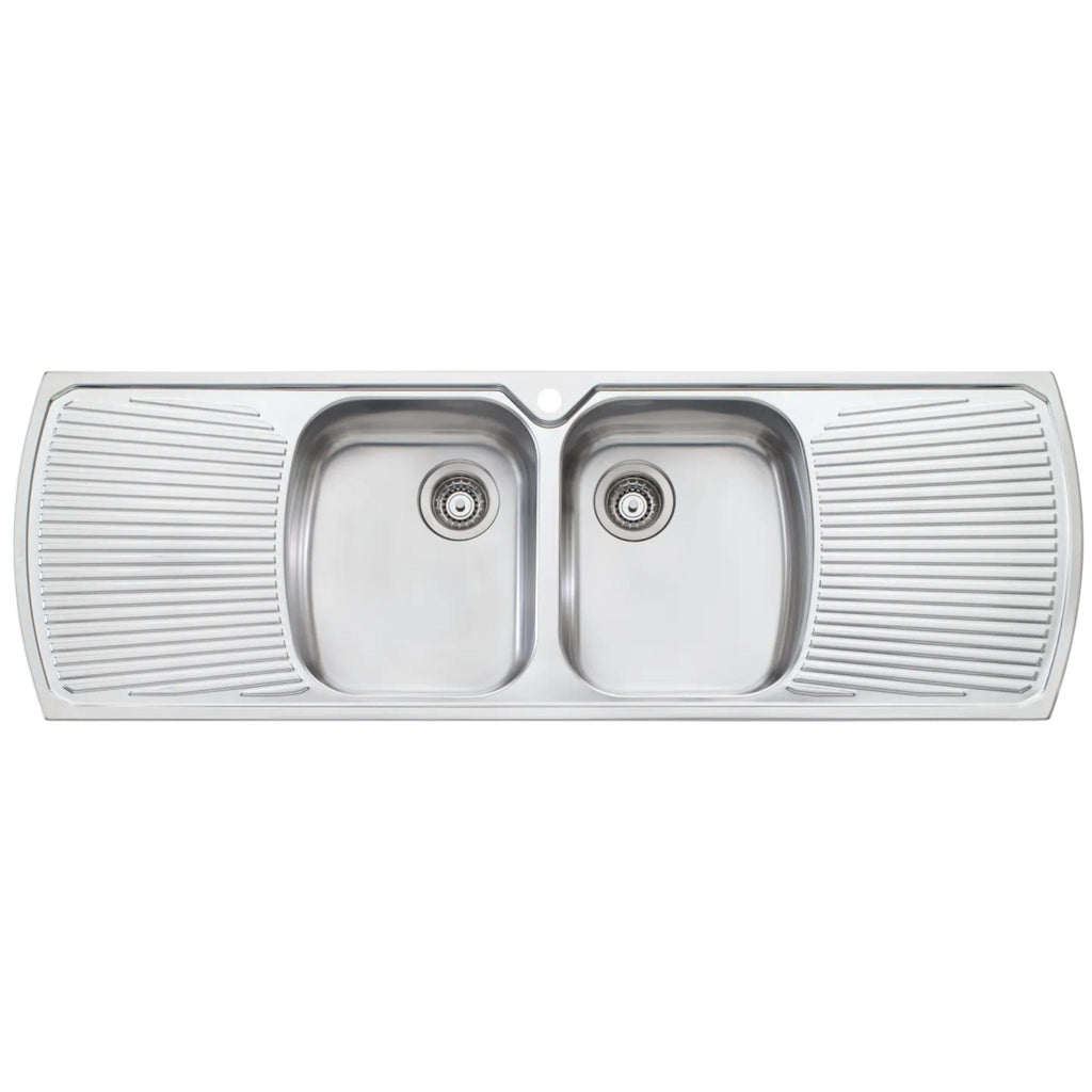 OLIVERI MONET DOUBLE BOWL TOPMOUNT KITCHEN SINK WITH TAPHOLE & DOUBLE DRAINER STAINLESS STEEL 1500MM