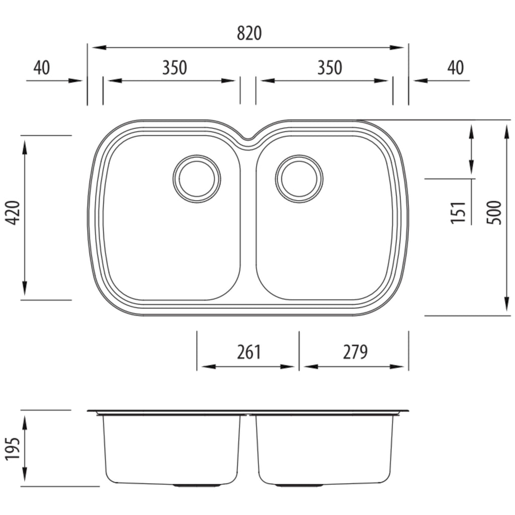 - Overall Sink Size: 820mm X 500mm X 195mm
