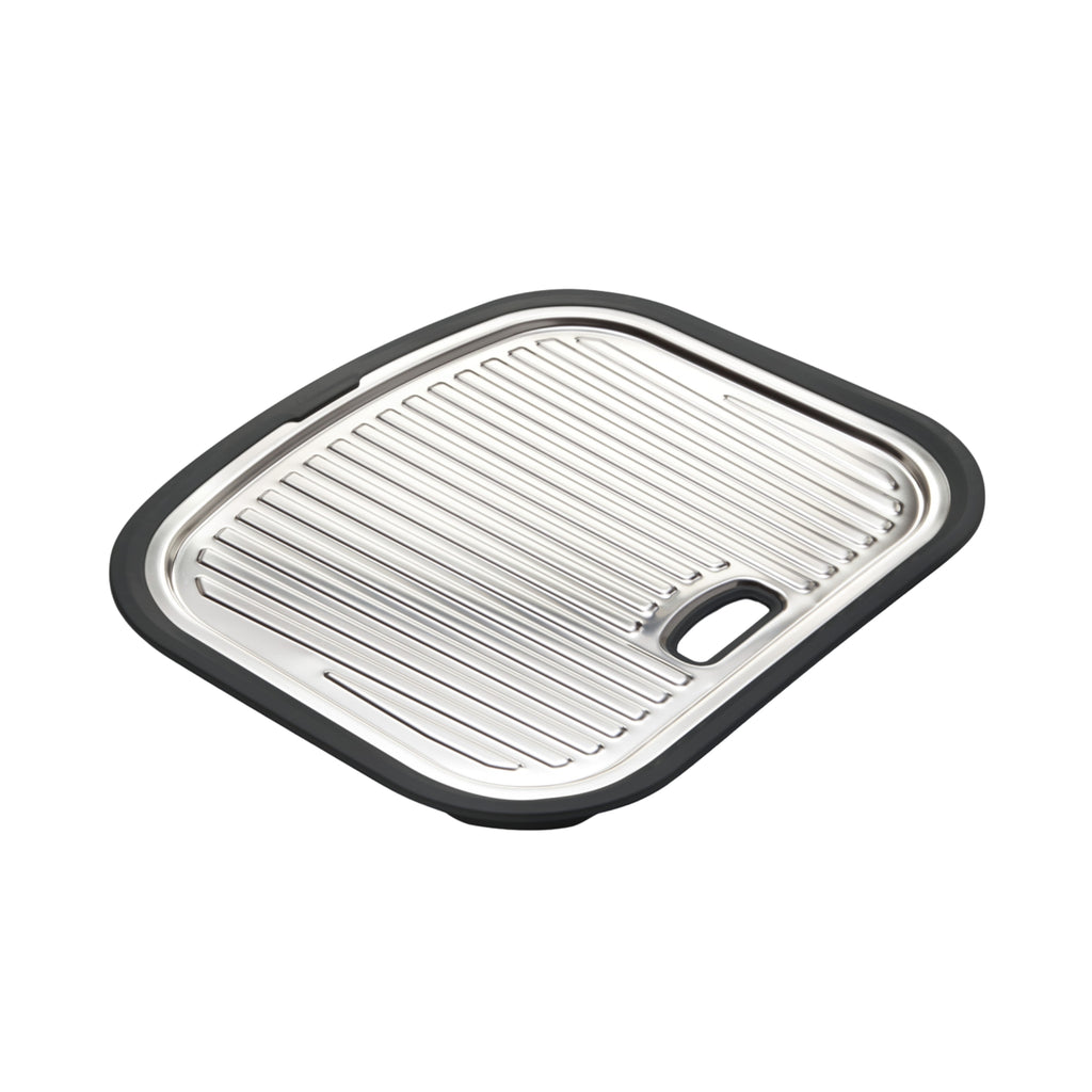 The Oliveri Monet Main Bowl Utility Tray 440mm extends your Monet sink into a practical prep and drying zone. Finished in sleek stainless steel with a protective black edge, it provides a raised surface for draining dishes, glassware or rinsed fruit and vegetables while water runs back toward the bowl. Durable and easy to clean, it keeps benchtops clear and organised.