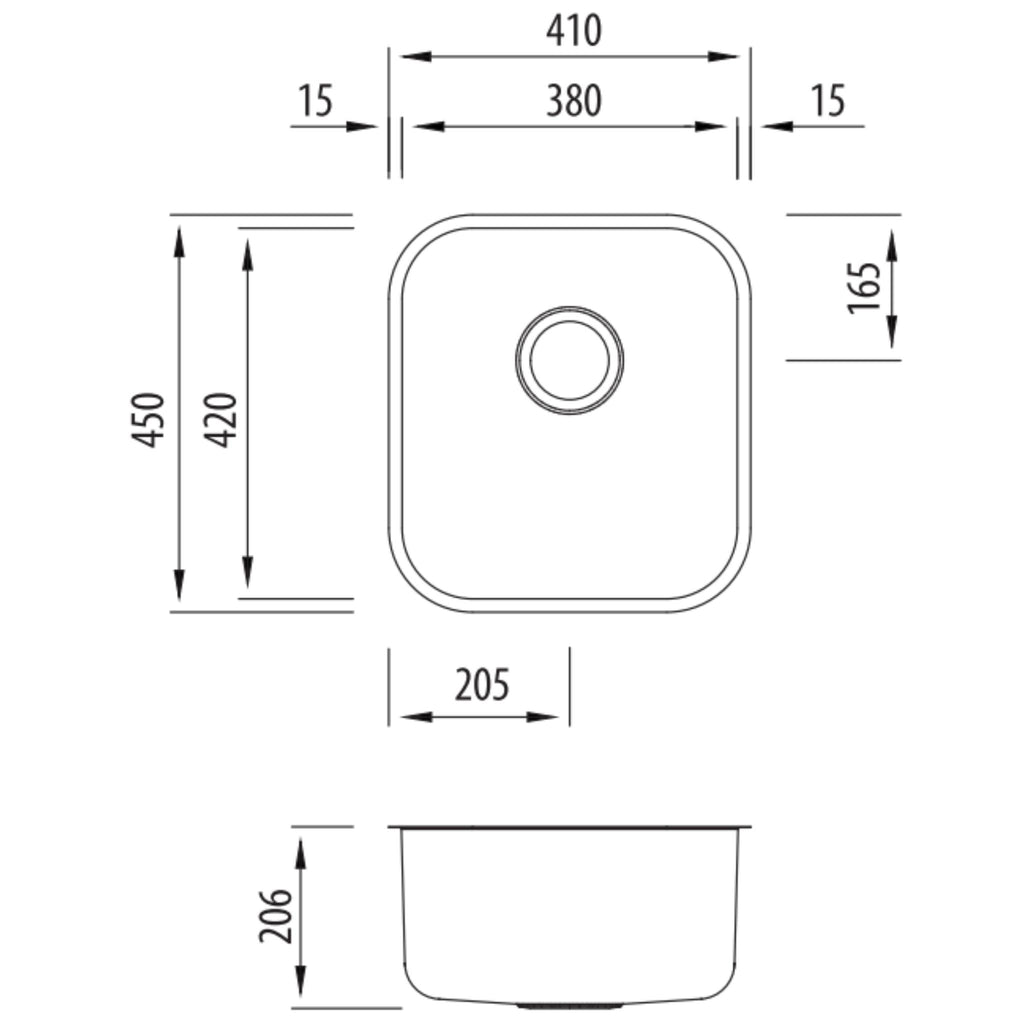 - Overall Sink Size: 410mm X 450mm X 206mm