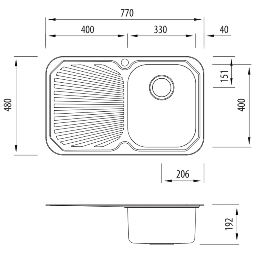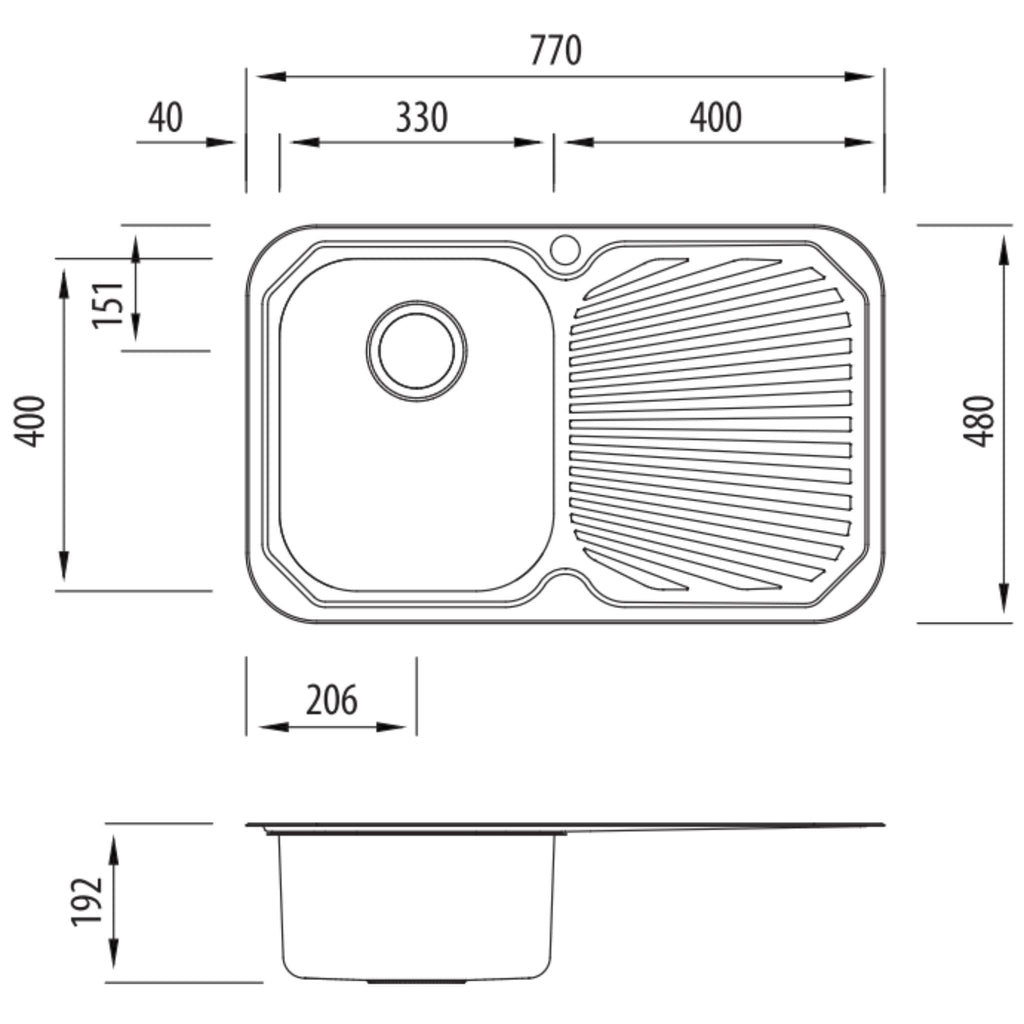 - Overall Sink Size: 770mm X 480mm X 192mm