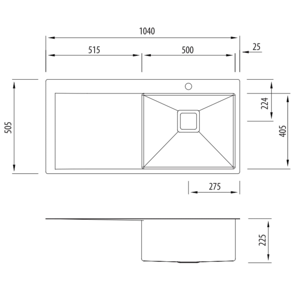 - Overall Sink Size: 1040mm X 505mm X 225mm