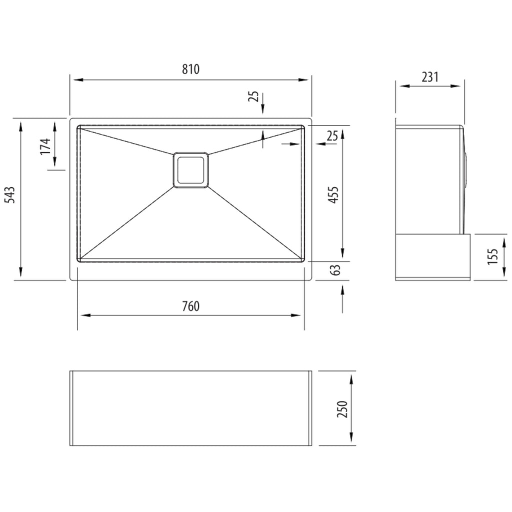- Overall Sink Size: 810mm X 543mm X 250mm