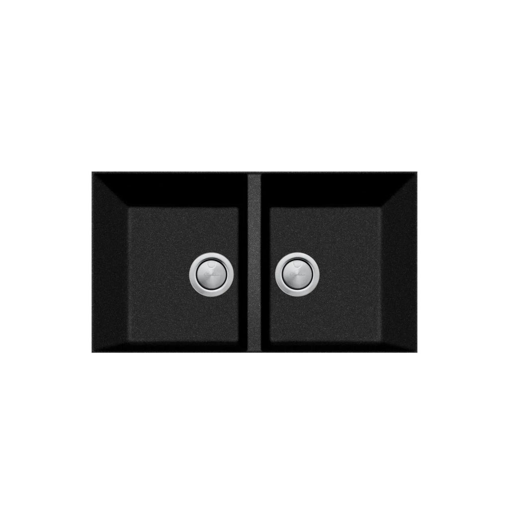 OLIVERI SANTORINI PICCOLO DOUBLE BOWL UNDERMOUNT KITCHEN SINK BLACK 755MM