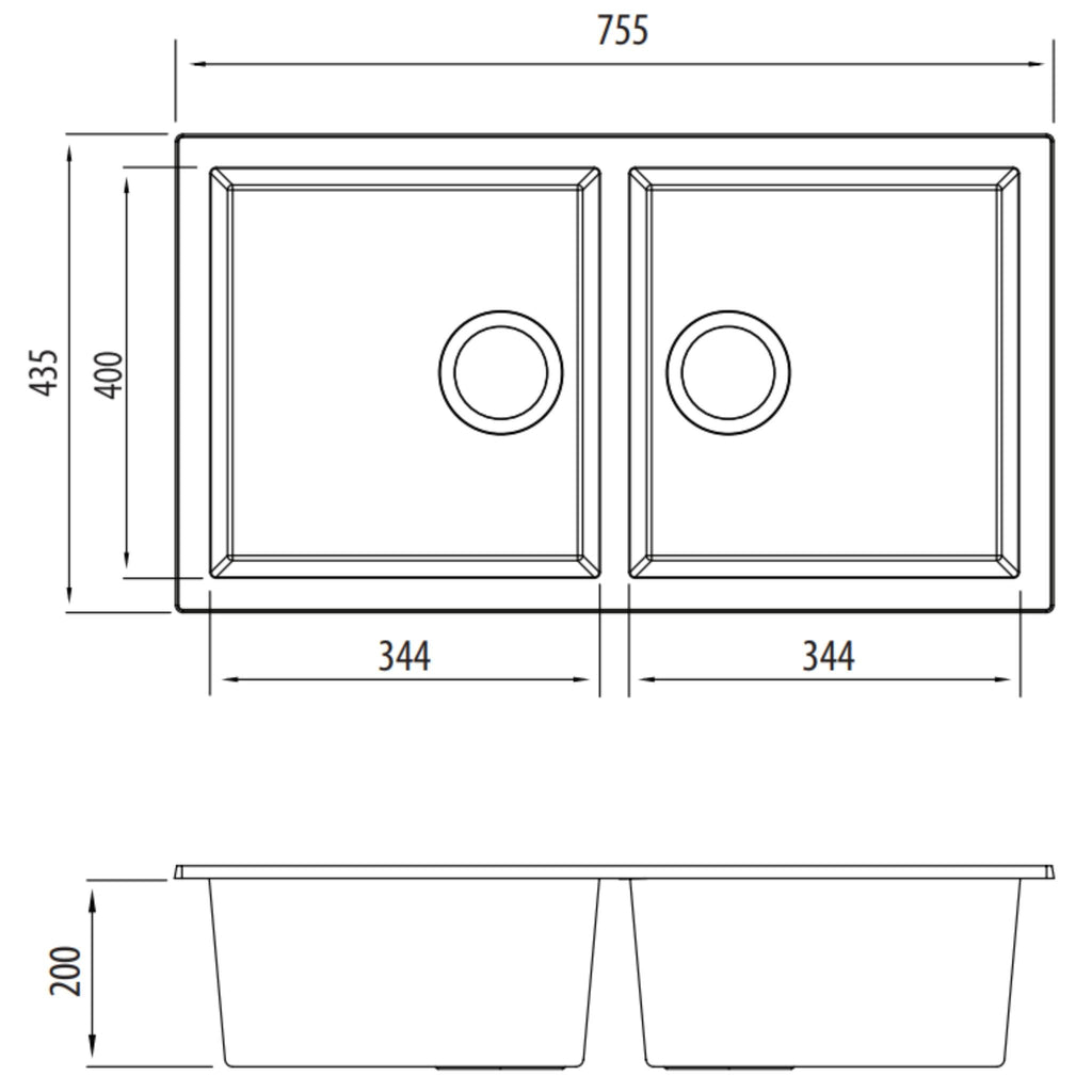 - Overall Sink Size: 755mm X 435mm X 200mm