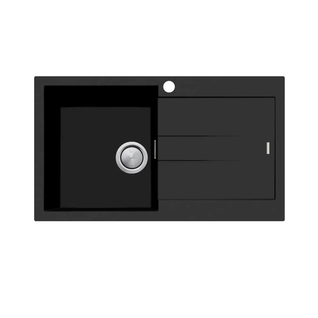 The Oliveri Santorini Single Bowl Topmount Sink with Drainer offers practical functionality with a modern design. Made from 80% granite and quartz particles blended with 20% acrylic, this 860mm sink in bold White provides a spacious 34L single bowl paired with an integrated drainer. Designed for secure topmount installation, it comes complete with basket waste featuring a rectangular overflow. Backed by a lifetime manufacturer warranty with 1-year replacement parts, it delivers long-lasting strength, durability, and performance.