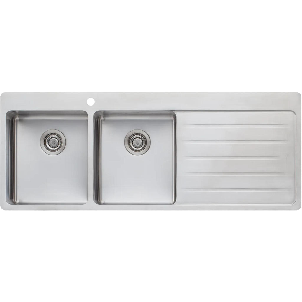 OLIVERI SONETTO DOUBLE BOWL TOPMOUNT ALFRESCO AND KITCHEN SINK WITH TAPHOLE & DRAINER STAINLESS STEEL 1300MM
