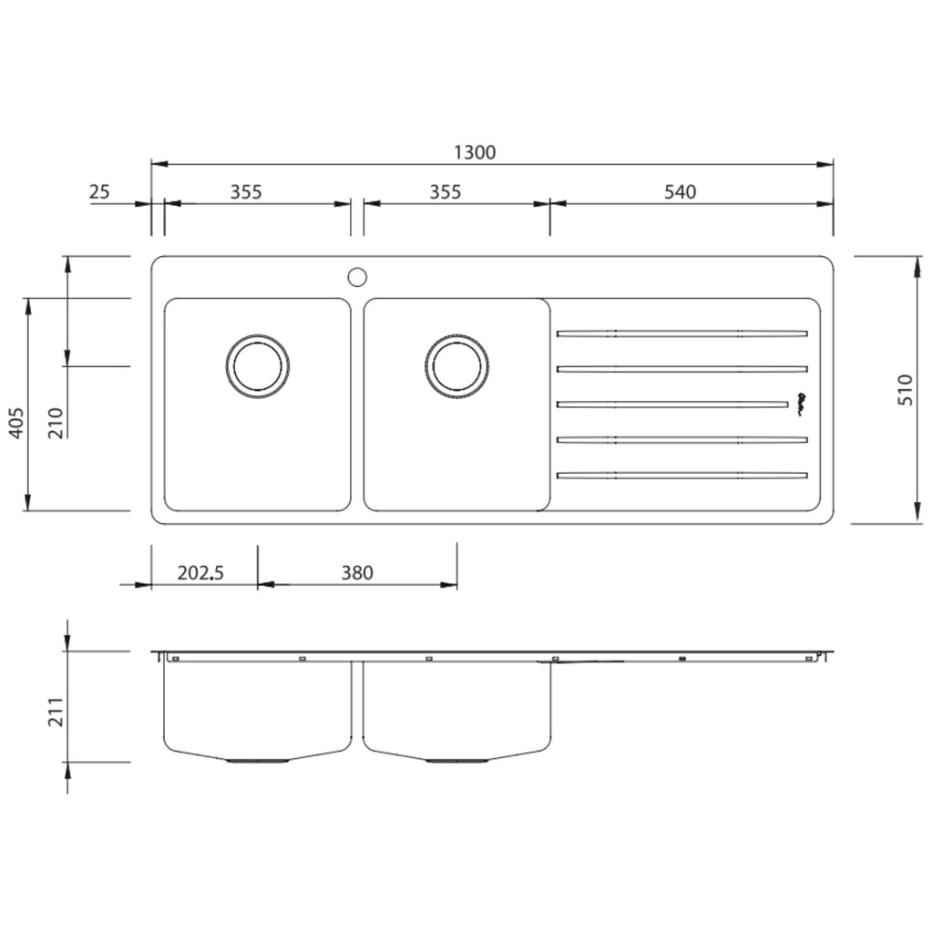 - Overall Sink Size: 1300mm X 510mm X 211mm