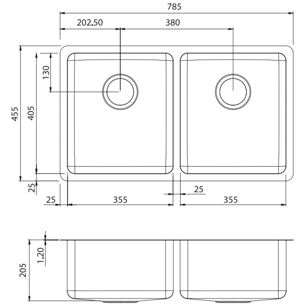 - Overall Sink Size: 785mm X 455mm X 205mm