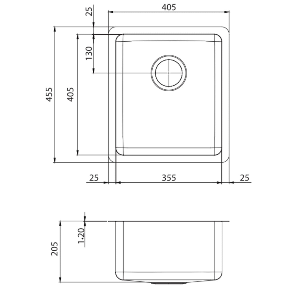 - Overall Sink Size: 405mm X 455mm X 205mm