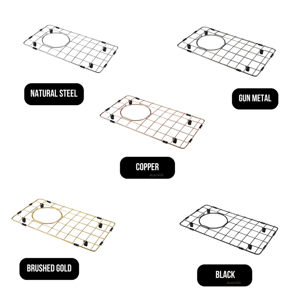 Oliveri Spectra 1/2 Bowl Protector Gunmetal combines a contemporary dark finish with practical protection for compatible Spectra sink bowls. Colours Available: Natural Steel, Black, Brushed Gold, Copper and Gunmetal. Crafted from durable stainless steel, it helps prevent scratching and marking while providing a raised surface ideal for draining, rinsing or defrosting food and dishes. Warranty: 1 year replacement parts, making it a durable, design-led accessory for busy kitchen or laundry spaces that demand both function and style.