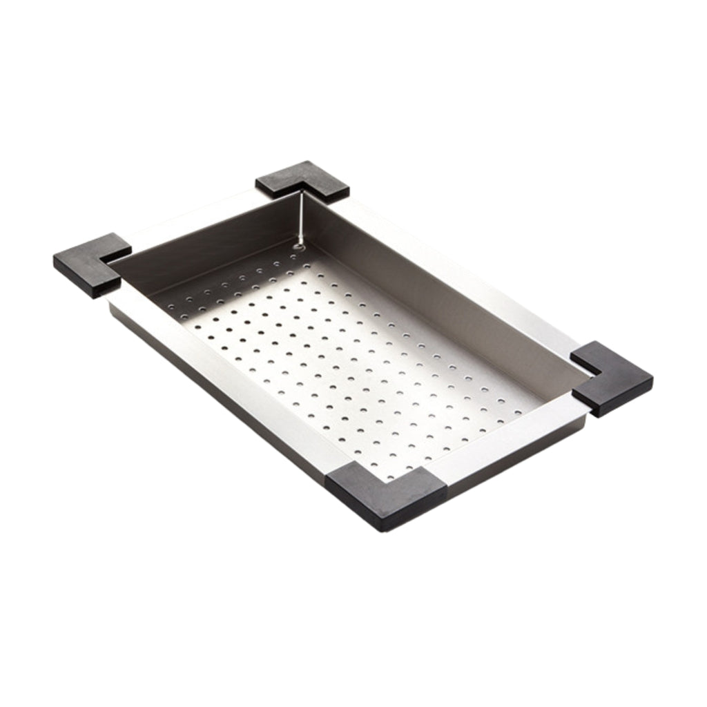 The Oliveri Stainless Steel Professional Colander 445mm is designed to sit neatly inside compatible Oliveri bowls, creating a dedicated zone for straining pasta or rinsing fresh produce. Colours Available: Stainless Steel. Material: durable stainless steel with a deep 445 x 270 x 75mm profile that keeps food securely contained while water drains directly into the sink. Ideal for busy kitchens wanting professional-style workflow at home