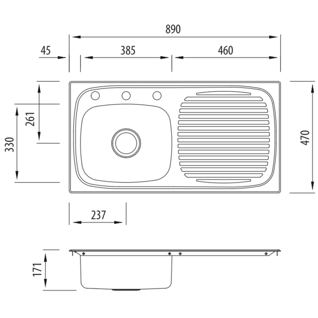 - Overall Sink Size: 890mm X 470mm X 171mm