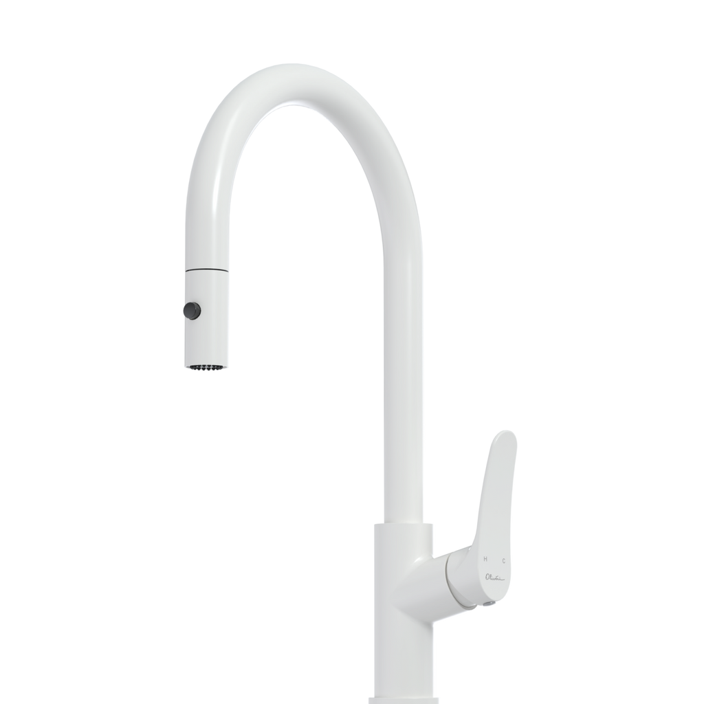 OLIVERI VERONA LEAD FREE PULL OUT GOOSE NECK SPRAY MIXER 431MM WHITE