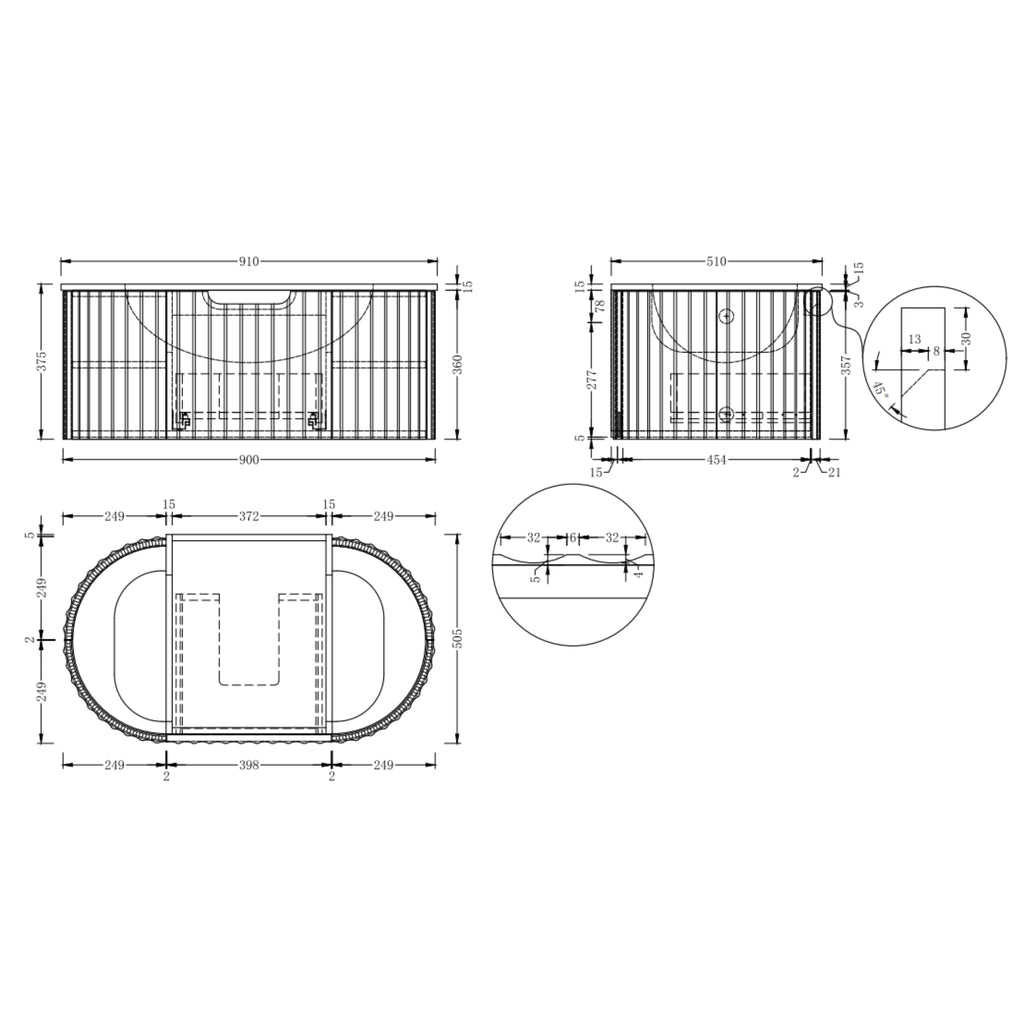 ORIO ARGYLE LIGHT WALNUT 900MM SINGLE BOWL WALL HUNG VANITY