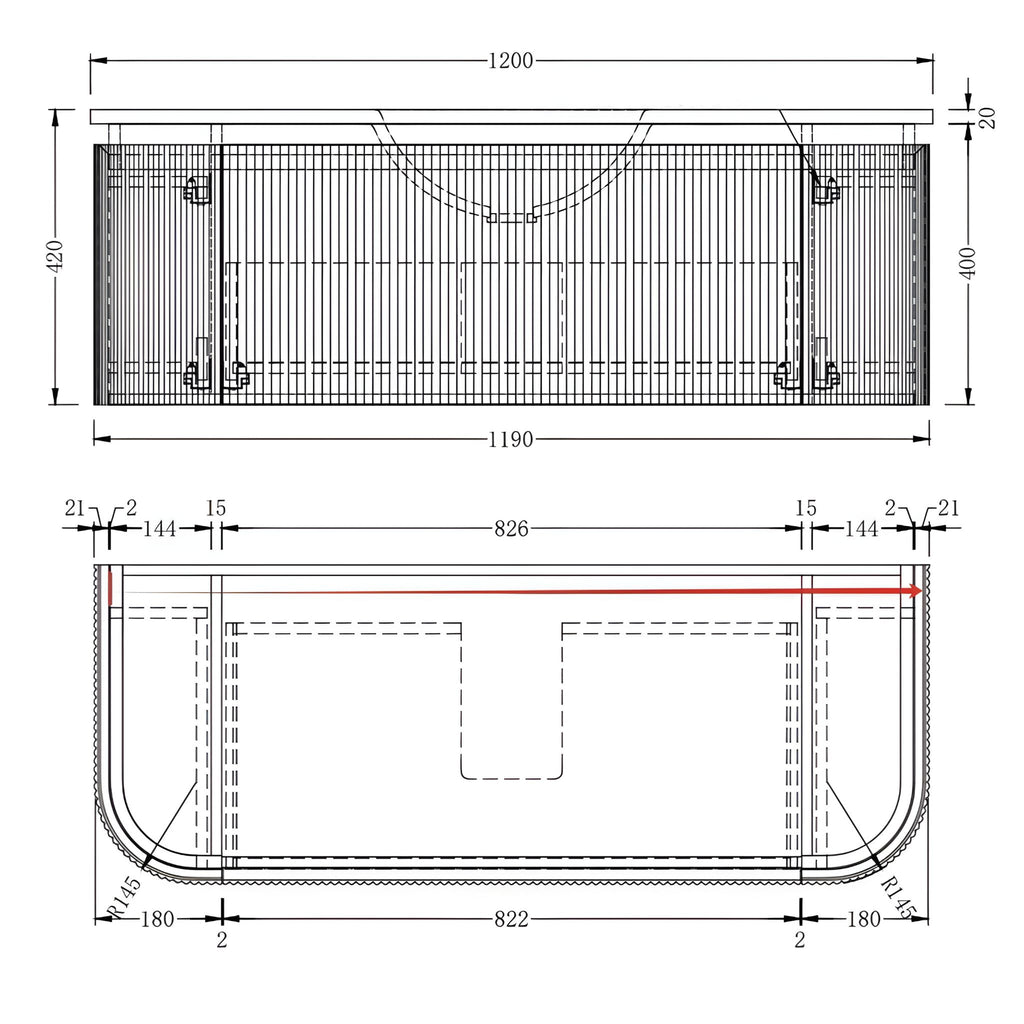 ORIO HAYMAN DARK WALNUT FLUTED 1200MM CURVE SINGLE BOWL WALL HUNG VANITY