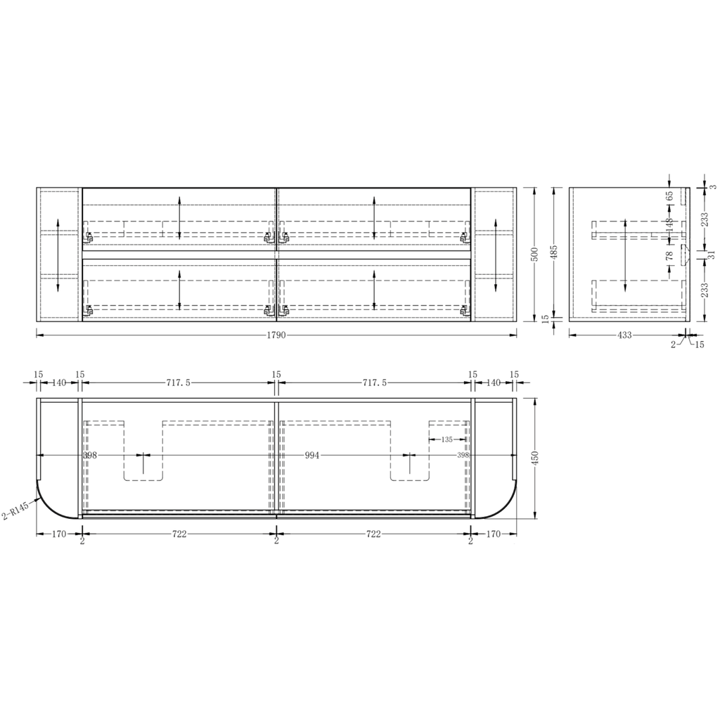 ORIO PEBBLE NATURAL OAK 1800MM CURVE DOUBLE BOWL WALL HUNG VANITY