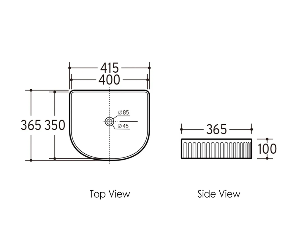 The Otti Archie Above Counter Basin, measuring 415mm, is a chic and durable addition to any bathroom. Crafted from high-quality ceramic, it is available in both gloss white, matte white and matte black, offering versatility to complement various decor styles. Its unique French fluted detail design and distinctive arch shape elevate the aesthetic appeal. This basin comes with a reassuring 5-year product replacement warranty and an additional 12 months warranty covering all parts and labor, ensuring long-lasting satisfaction.