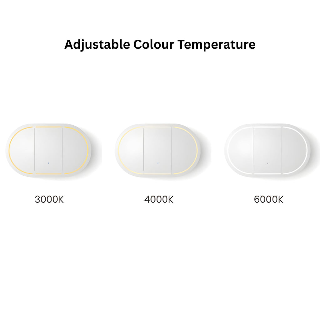 The Otti Bondi Matte White LED Shaving Cabinet with PowerPoint (1200x750mm) combines sleek design and practicality. Crafted from moisture-resistant curved plywood, it features triple soft-closing doors, a fixed shelf, and a 4mm copper-free mirror. With dimmable LED lights offering cool, natural, and warm light, it includes a motion sensor, on/off button, and a USB/USB-C power point. Available in black oak and natural oak, and in sizes 900mm, 1500mm, and 1800mm. Non-LED options also available.